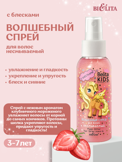 Волшебный спрей с блестками для волос несмываемый Для девочек 3-7 лет Belita Kids 100 мл